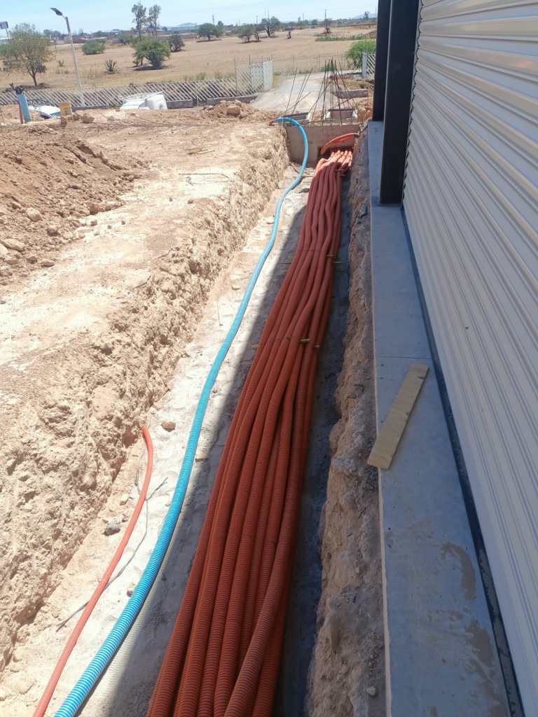 Gestión, administración e instalación de estructura metálica tipo “H” de alta tensión, ampliación de línea aérea de media tensión, dictamen revisión de instalaciones eléctricas, distribución eléctrica aérea y subterránea de baja tensión, conexión a nuevos servicios, distribución eléctrica interna de bodegas y alumbrado perimetral.